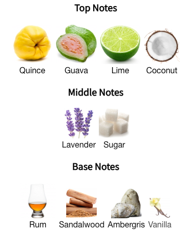 Base: The fragrance settles into a warm, sensual base of sandalwood, rum, ambergris, and vanilla. These notes create a rich, creamy foundation that evokes the feeling of a sun-soaked evening, with a touch of rum bringing an added complexity to the composition.