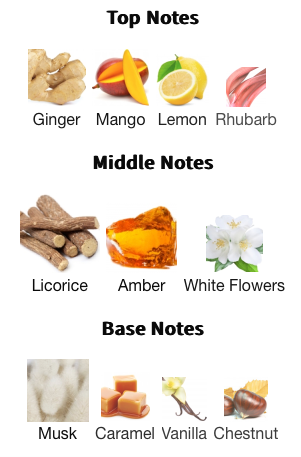 Mango Ice opens with an electrifying burst of juicy mango, zesty lemon, and spicy ginger, immediately invigorating the senses. The tart nuance of rhubarb adds a crisp, refreshing bite, setting the stage for an alluring heart of amber, white florals, and a touch of licorice, which introduces a subtle, sophisticated sweetness. The dry down reveals a rich and creamy blend of vanilla, caramel, chestnut, and musk, wrapping the fragrance in a warm, inviting embrace.