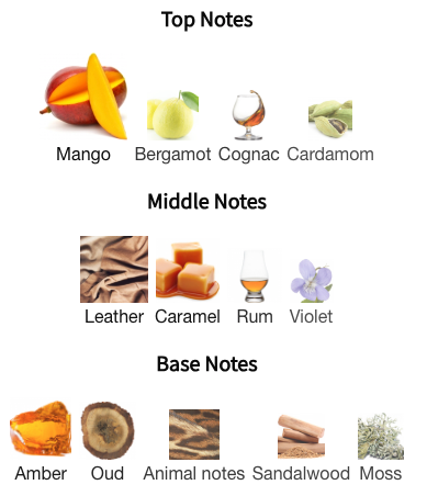 The opening greets you with sun-drenched mango, zesty bergamot, and the rich warmth of cognac, spiced softly with cardamom. It’s instantly transportive—like sipping a tropical cocktail on a private island at dusk. As the heart unfolds, waves of velvety rum and sticky caramel swirl around supple leather and violet, creating a smooth and slightly gourmand center. This is where the paradise starts to misbehave. The base is deep and unapologetically sensual, combining earthy moss, creamy sandalwood, and a transparent oud with a whisper of animalic warmth that lingers like the memory of something you shouldn't have done—but don’t regret.