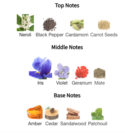 Heart: The fragrance’s signature iris note emerges, powdery yet modern, without feeling old-fashioned. This is paired with warm amber and soft violet, adding depth and a hint of floral elegance while maintaining a masculine character.